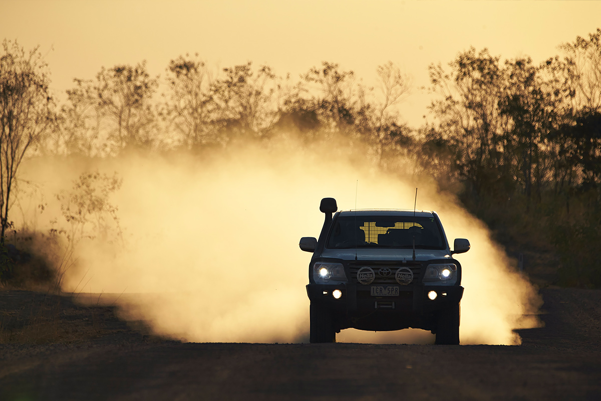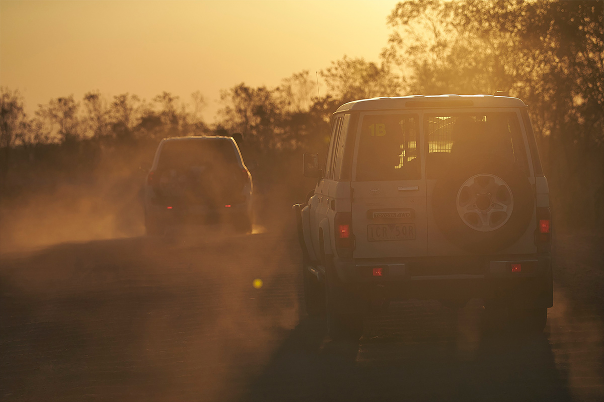 パースを出発後、すぐに待ち構えていたのは、暴風雨だった。轍に溜まる水があり、さらにまるで電車のような長さからそう例えられるロードトレインともすれ違う。初日からオーストラリア特有の道路・気象環境を身を持って体験することになった。ステアリングが軽いランクル70では、強い横風の影響をもろに受け、常にハンドルを修正しながら走る必要がある。ドライバー達は細心の注意を払いながら進む。