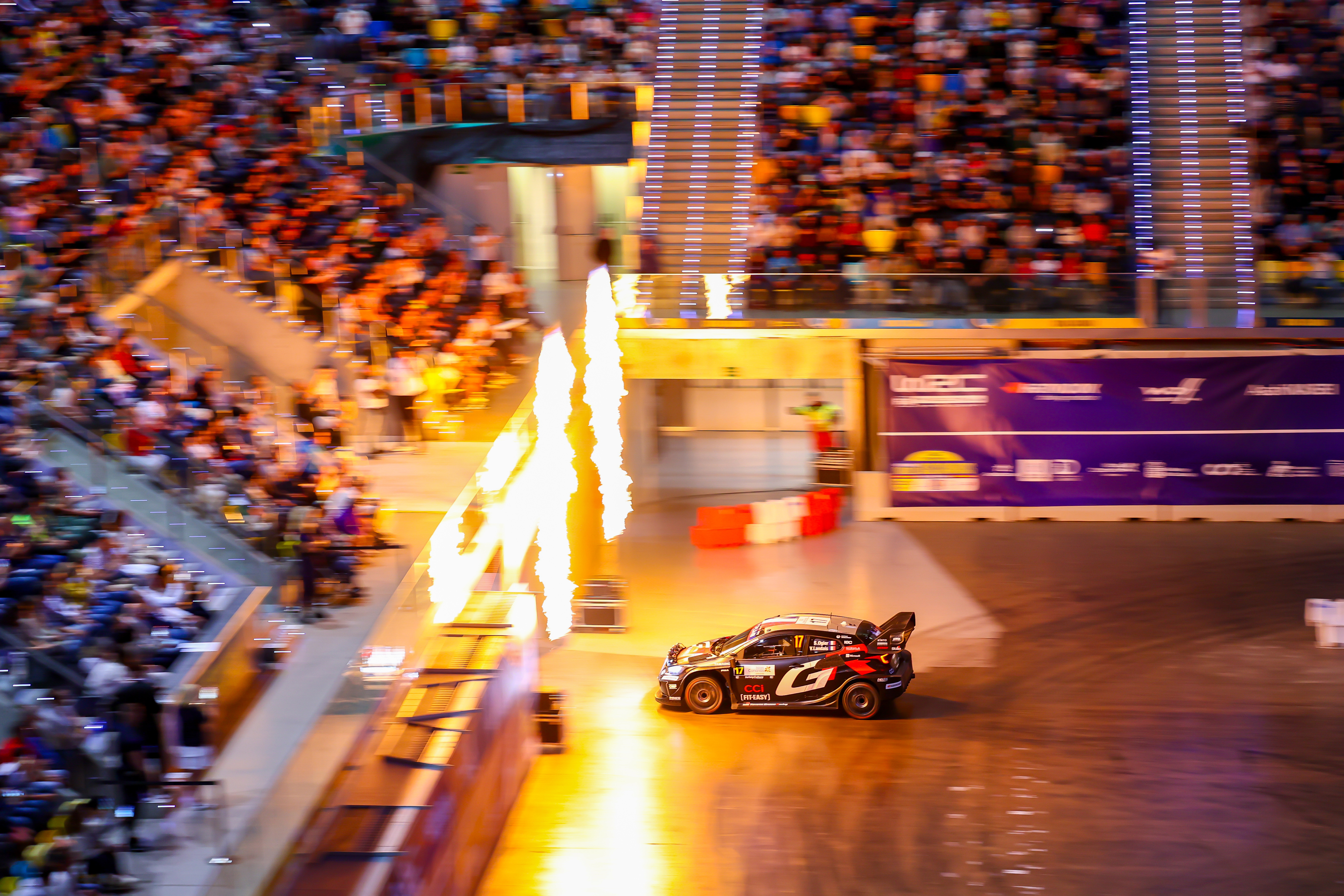 Following the short super special that rounded out the day and ran partly inside a basketball arena, Rovanperä’s lead stands at 45.2s over Ogier. Fastest in the super special, championship leader Elfyn Evans is 22.9s further back in third position, with Takamoto Katsuta in fourth, another 35.8s back.